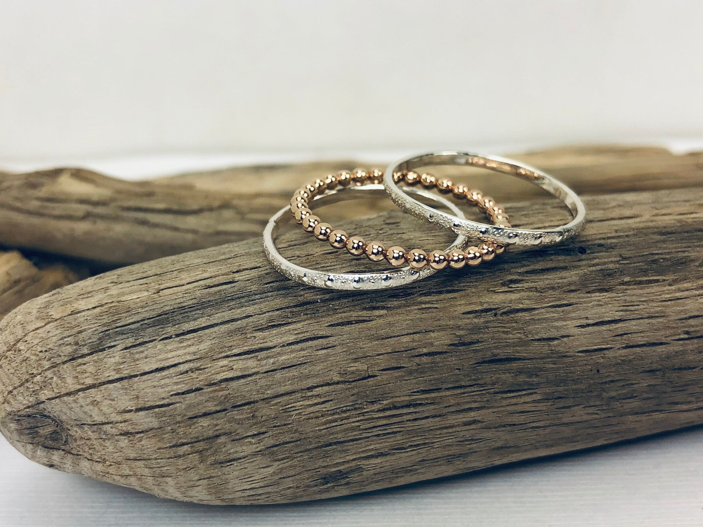 Customize your own set of stacking rings to create a look that is uniquely yours. Mix and match 7 distinct styles in sterling silver and 14k gold filled bands to discover your perfect fit!